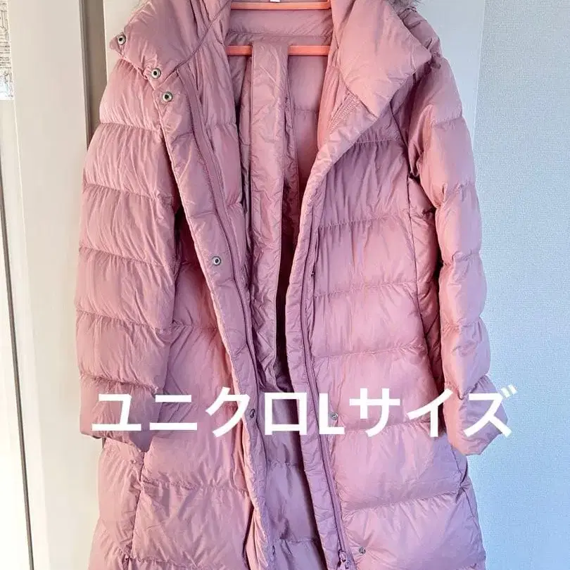 퍼 달린 핑크 다운 자켓 L 사이즈 유니클로