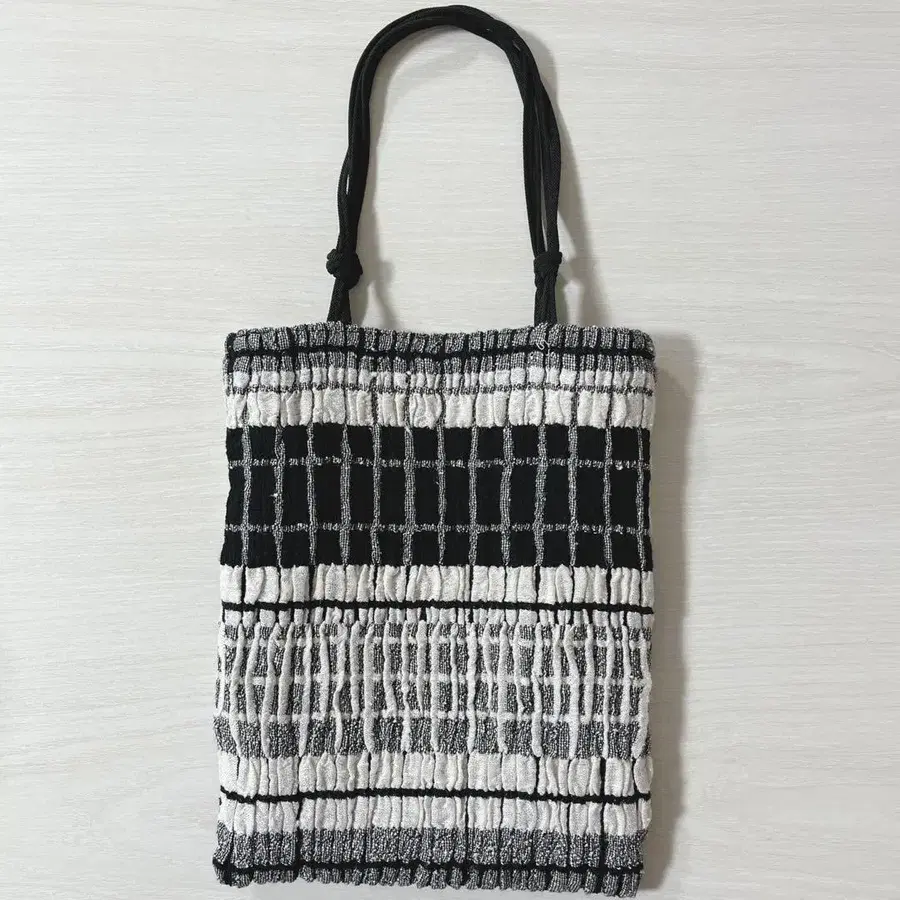 미사용 츠루오카 실크 [kibiso] 핸드백 화이트 x 블랙 격자무늬