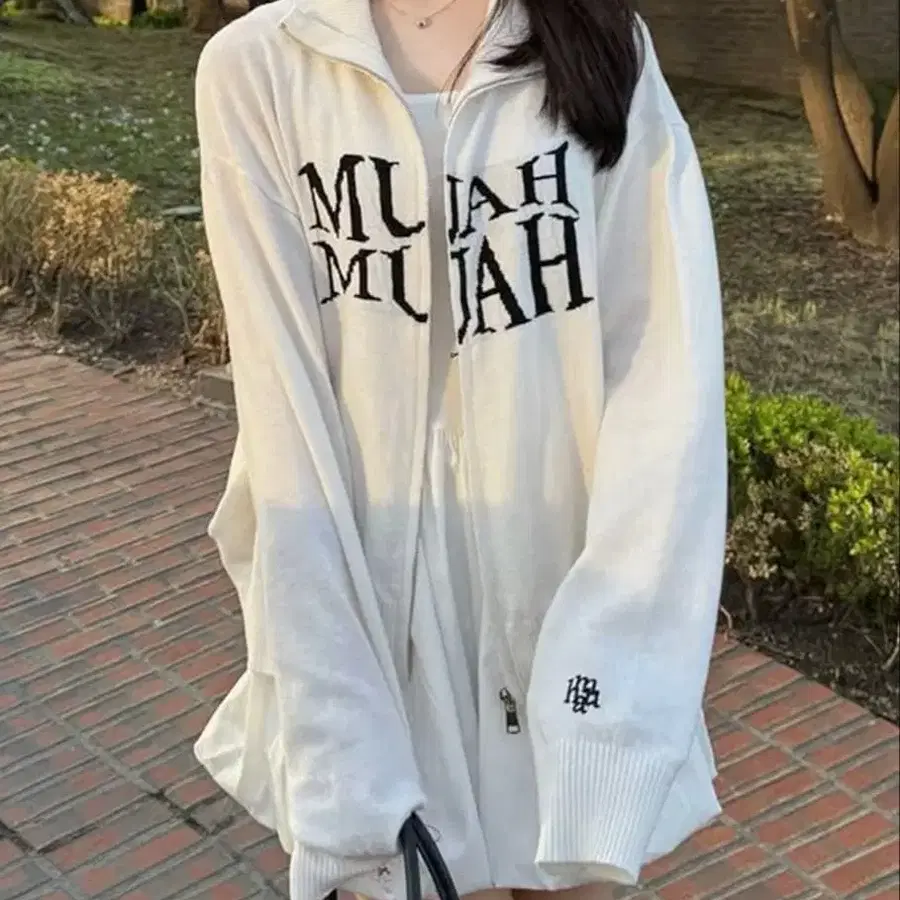 muahmuah 무아무아 자카드 니트 집업 가디건 Cream