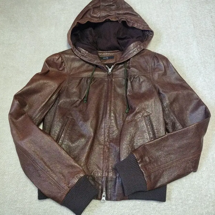 미사용 새상품 츄츄 브라운 가죽 후드 부착 자켓 S