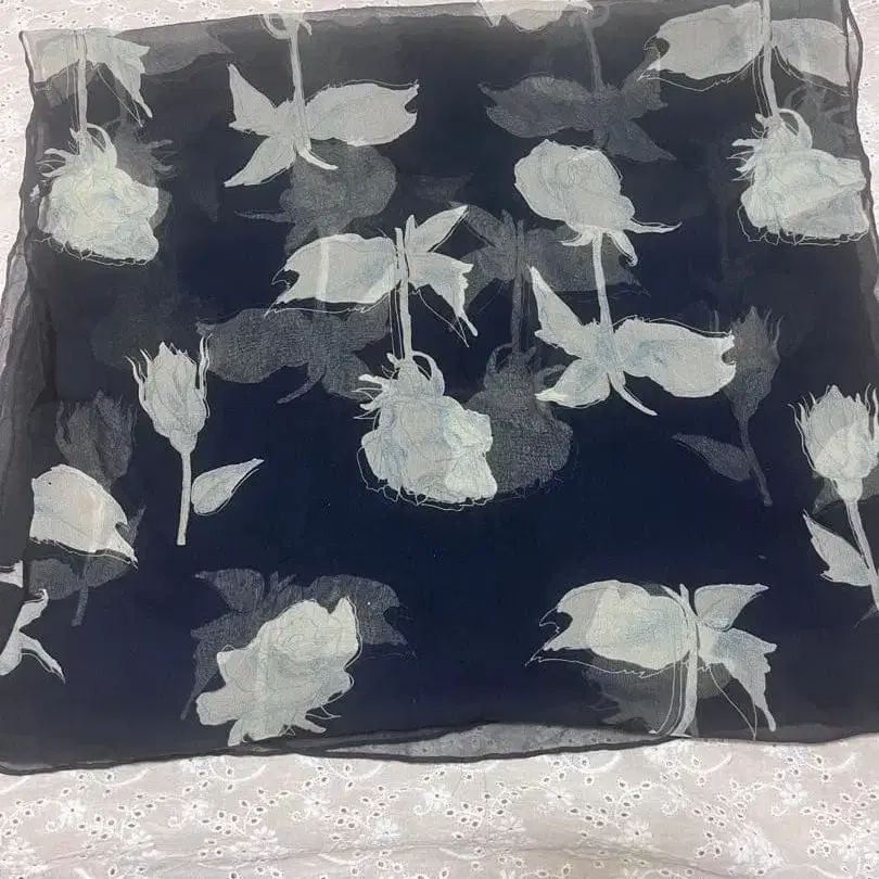 마가렛호웰 실크 스카프 네이비 꽃무늬 새상품급