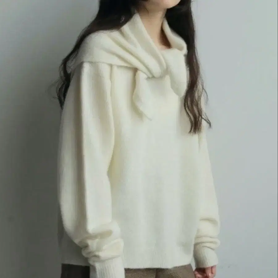 알파카 혼방의 부드러운 니트 직물로 완성한 니트탑. 풀오버와 같은 니트 직물의 삼각 스카프 포함. 스카프는 어깨에 걸치거나 머리에 두르는 등 다양한 어레인지를 즐길 수 있습니다. 심플한 크루넥 상의로도 착용 가능. 적당한 여유를 가진 사이즈로, 폭넓은 아이템과 궁합이 좋은 한 장입니다. 아우터 안에도 입기 쉽고, 패턴 하의나 표정이 있는 소재의 하의와도 잘 어울립니다.