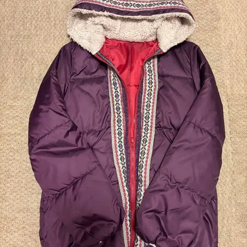 퍼플 후드 부착 다운 자켓