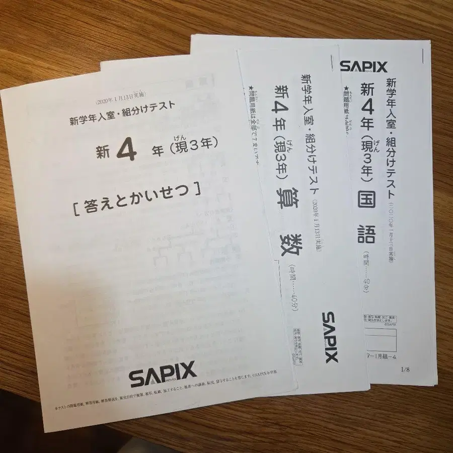 SAPIX 신학년 입실 조별 편성 테스트 신 4학년