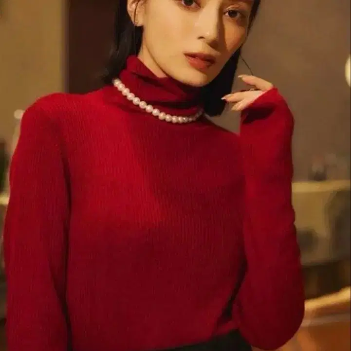 즉시 구매 OK Nouveau S 터틀넥 스웨터 긴팔 레드 가을 겨울용