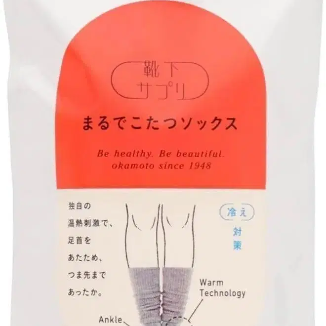 소중한 건강과 아름다움은 발끝에서 시작되며, 매일 신는 양말로 건강과 아름다움을 만들 수 있다는 생각으로 [양말 서플리] 시리즈를 개발했습니다. 오카모토의 특허 기술을 활용하여, 여성의 고민인 [붓기] [피로] [냉기] [냄새]를 대책하는 상품을 전개하고 있습니다.