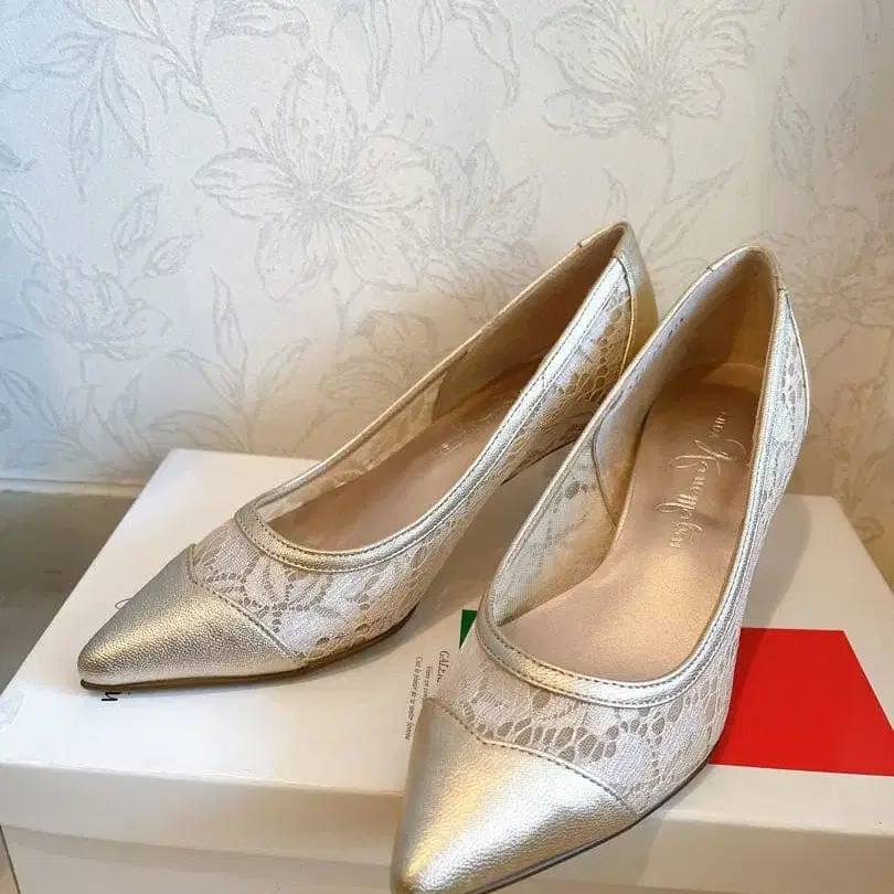 긴자 카네마츠 골드 레이스 하이힐 스틸레토