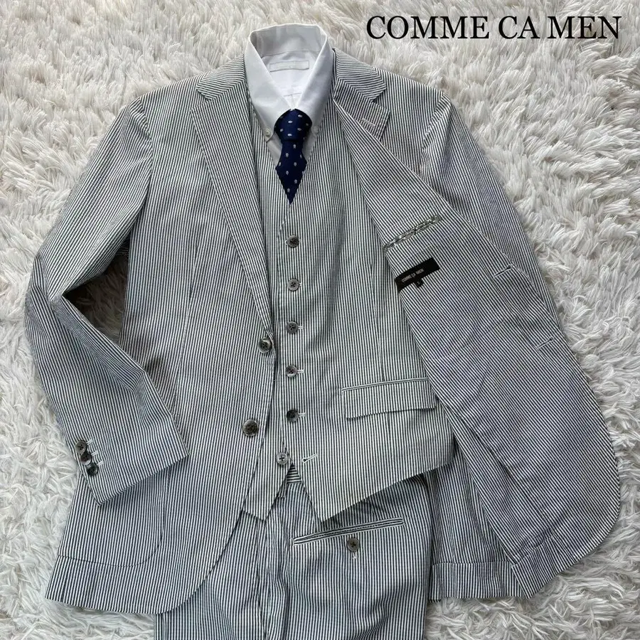 새상품급 COMME CA MEN 쓰리피스 축구지 스트레치 스트라이프 S