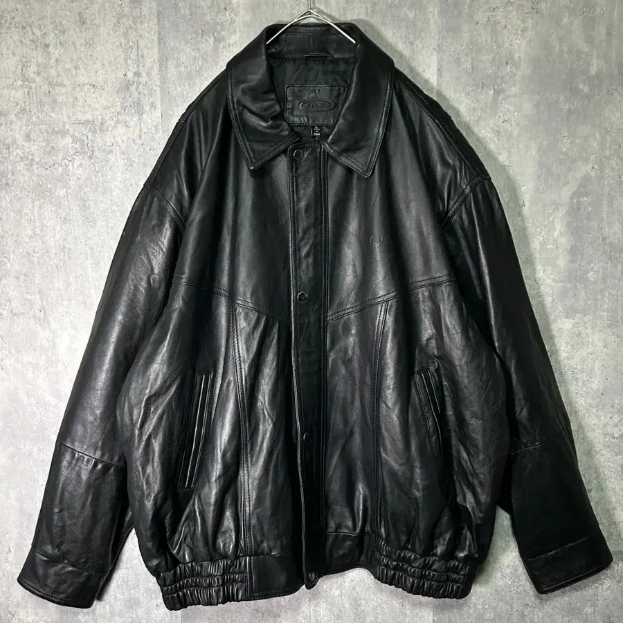자동 번역되었어요. 원문보기Loose genuine leather jacket blouson black emboss logo