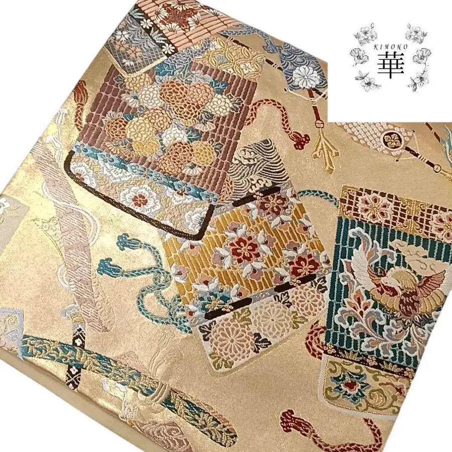 화 후쿠로 오비 포멀 길상 골드 컬러 베이스