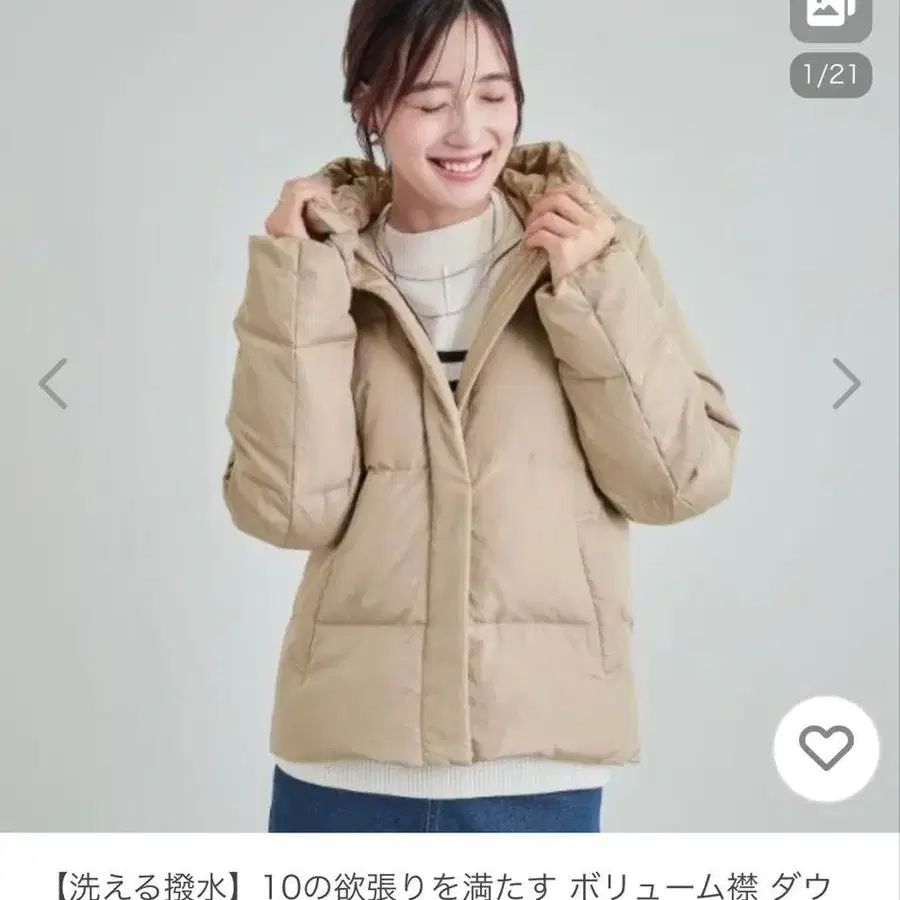 새상품 택 포함 워셔블 볼륨 소매 다운 자켓 베이지