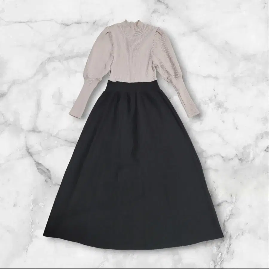 • 바니스뉴욕 니트 플레어 이소재 원피스