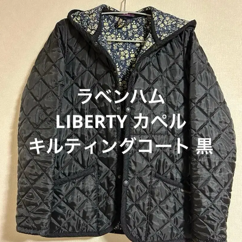 새상품급 라벤햄 LIBERTY 퀼팅 코트 블랙 후드 부착