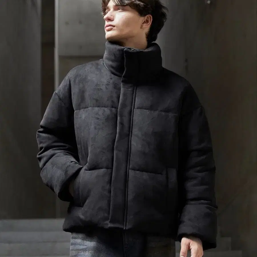 [ CLEL ] 볼륨 하이넥 숏 패딩 자켓 블랙 스웨이드