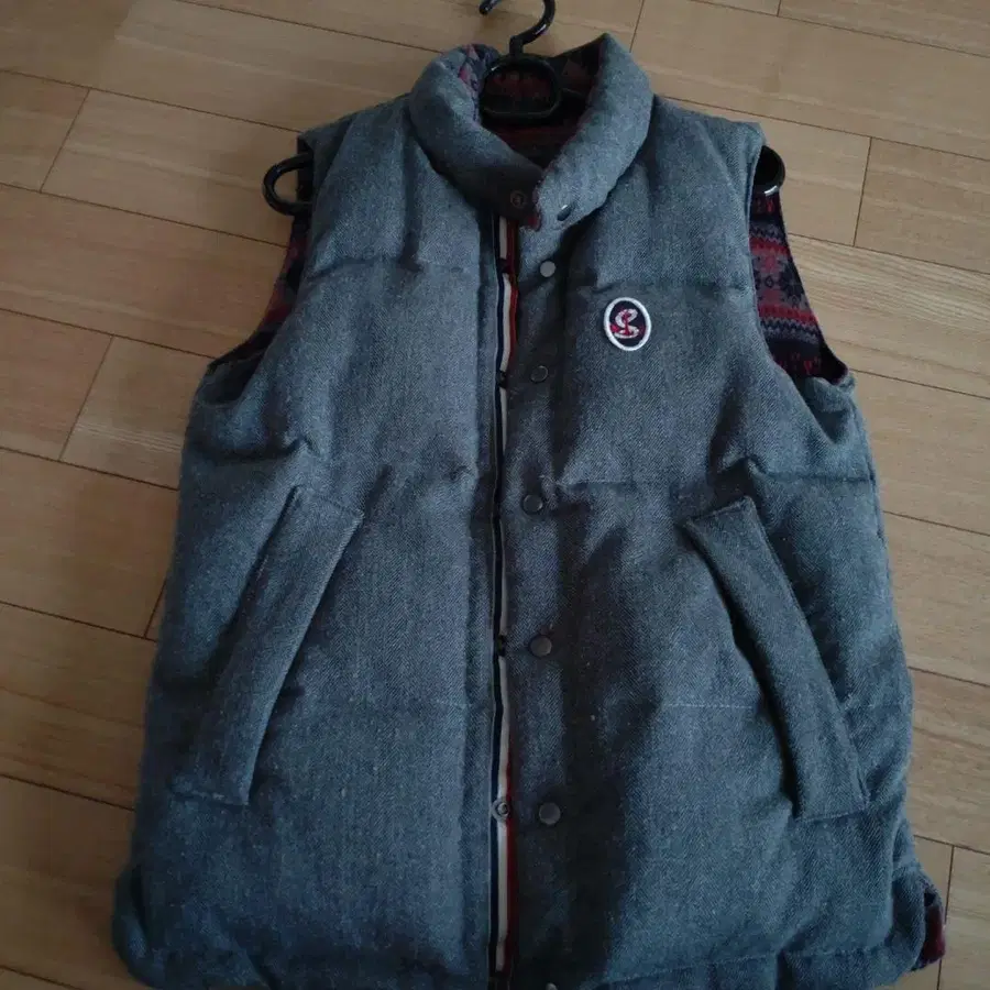 맨즈 멜로즈 그레이 다운 베스트 자수 로고 포함