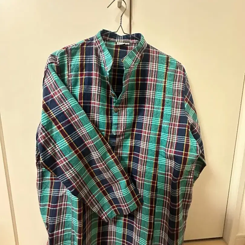 플란넬 셔츠 긴팔 그린 블루 체크