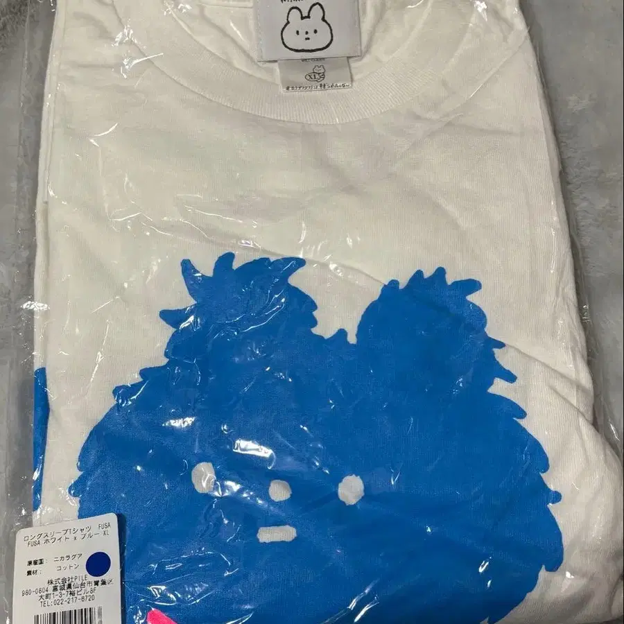 킷코짱 롱 슬리브 T셔츠 화이트 블루