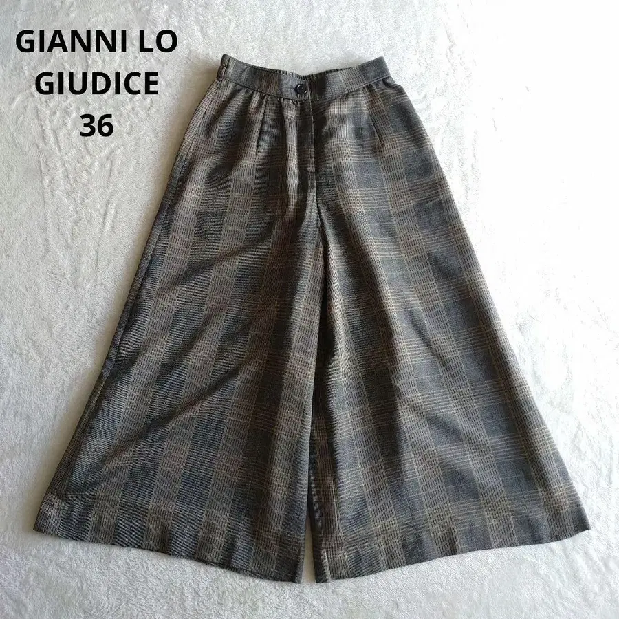 잔니 로 주디 체크 체크 와이드 팬츠 가우초 일본제 브라운 36