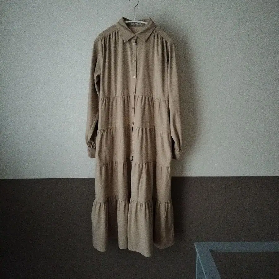 Aream 베이지 셔츠 원피스 긴팔 티어드