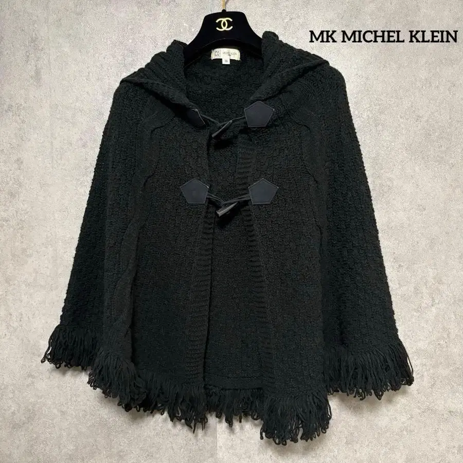 MK MICHEL KLEIN 후드 부착 니트 판초 블랙 일본제
