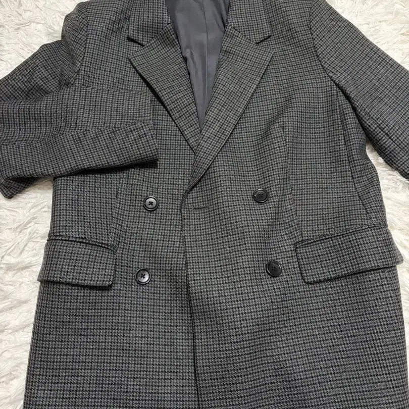 그레이 체크 무늬 자켓 스커트 세트 GU