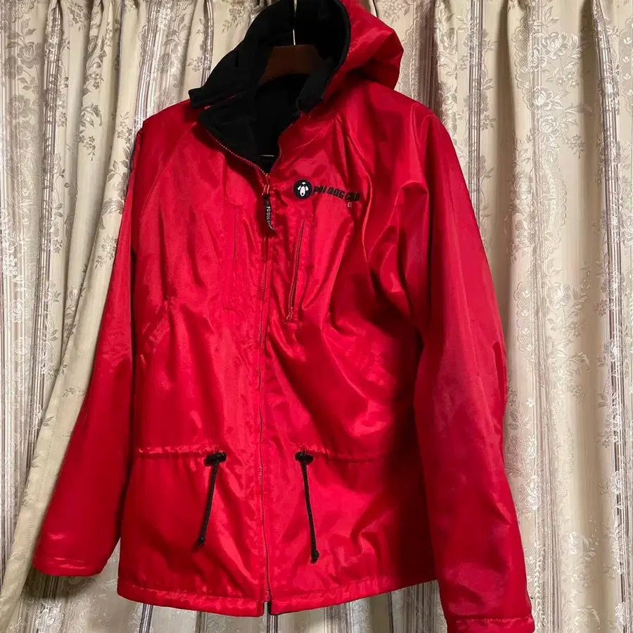 POI DOG CLUB 후드 부착 빨간색 나일론 자켓