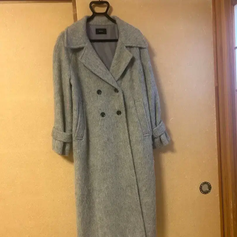 그레이 울 혼방 더블 브레스트 코트