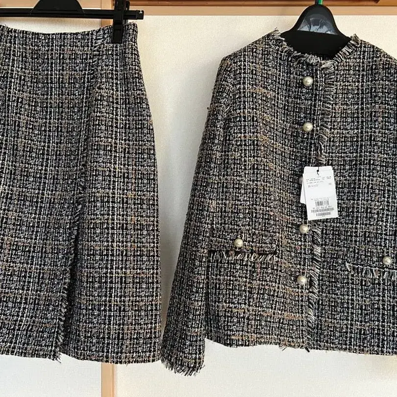미사용 새상품 트위드 자켓과 스커트 셋업