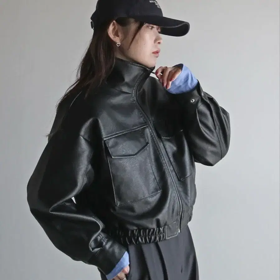 블랙 가죽 숏 기장 자켓, 캐주얼 스타일에 최적. - 색상: 블랙 - 디자인: 숏 기장, 지퍼 부착, 포켓 부착 1, 2회 정도 착용했습니다. 자연스러운 사이즈감으로 분위기 있는 빈티지 스타일의 가죽 숏 블루종 -detail- 적당한 드롭 숄더로 어반 스타일에도 어울리는 성인 취향의 숏 기장. 프론트 지퍼를 모두 잠그면 스탠드 카라가 됩니다. 볼륨 슬리브와 소매에는 턱이 있고, 소매 버튼도 2개 있어 원하는 소매 모양으로 착용 가능합니다. 빅 사이즈의 플랩이 달린 양쪽 가슴 포켓과 밑단 밴딩 등으로 가볍게 걸치기만 해도 멋스러운 아이템입니다. -fabric- 매끄럽고 부드러운 주름감이 있는 빈티지 스타일의 인조 가죽 소재. 안감은 소매가 부드럽게 들어가고 방한성도 겸비한 폴리에스테르 새틴. -styling- 슬랙스나 데님 팬츠에 심플하고 내추럴한 이너 코디를 추천합니다. 가볍게 셔츠를 이너로 맞춰도 분위기가 좋습니다. 실버 등 메탈릭 잡화를 매치하면 요즘 스타일의 코디가 완성됩니다. 여성용 모델 신장: 162cm 가슴 너비 55 / 어깨 너비 57 / 기장 46 / 소매 길이 49 방문해 주셔서 감사합니다. 사이즈 - M