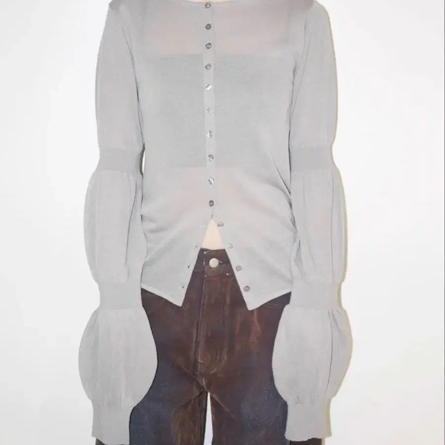 musubore 퍼프 슬리브 시어 가디건 그레이