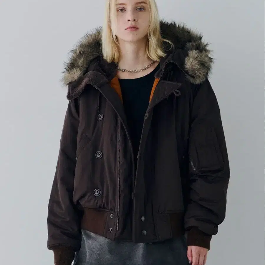 프론트 지퍼는 목까지 올라와 위까지 당기면 눈만 남기고 얼굴을 완전히 가릴 정도이며, 리브 니트 소매와 밑단은 외부 공기 유입을 막아주는 높은 방한성의