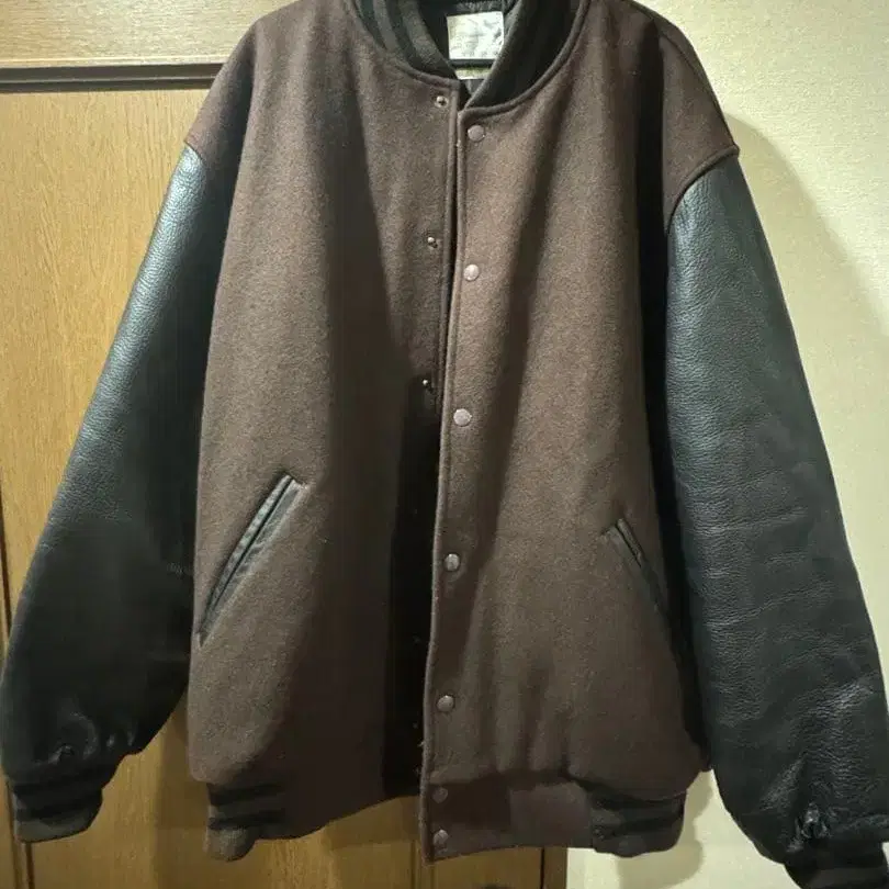 빈티지 바시티 자켓 천연 가죽 블랙/브라운