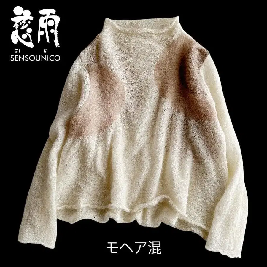 지우/센소유니코 경량 모헤어 혼방 울 서클 디자인 롤넥 니트 40