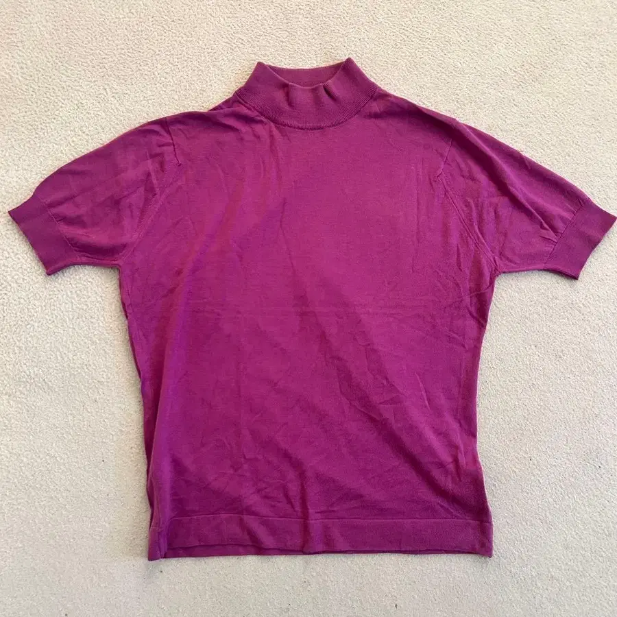 존스메들리 퍼플 하이넥 반팔 니트 씨 아일랜드 코튼 고급