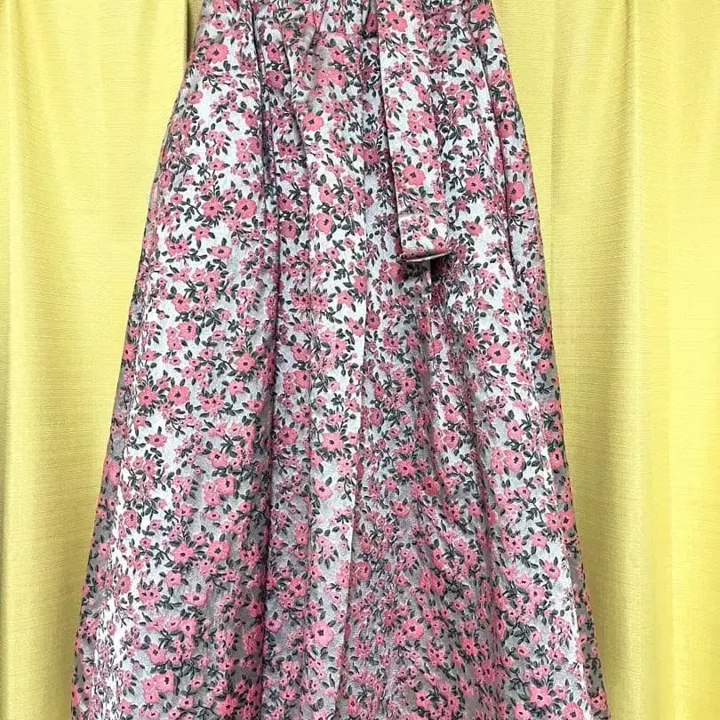 자카드 플레어 롱 스커트 꽃무늬 핑크 그레이