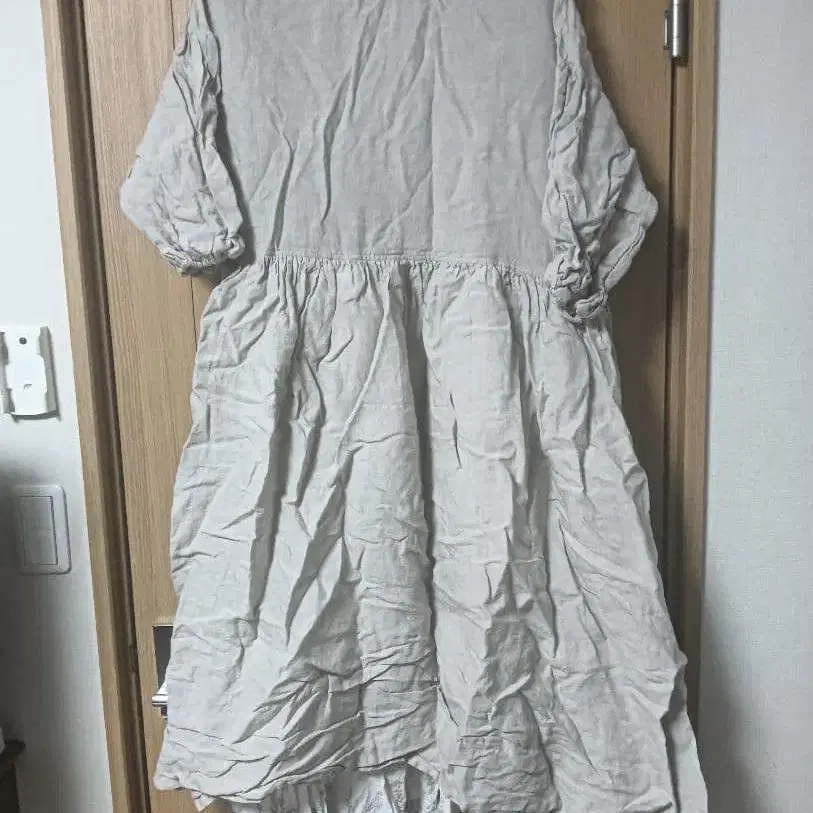 유명 작가님 린넨 5부 소매 후드 부착 롱 원피스 스캘럽 레이스