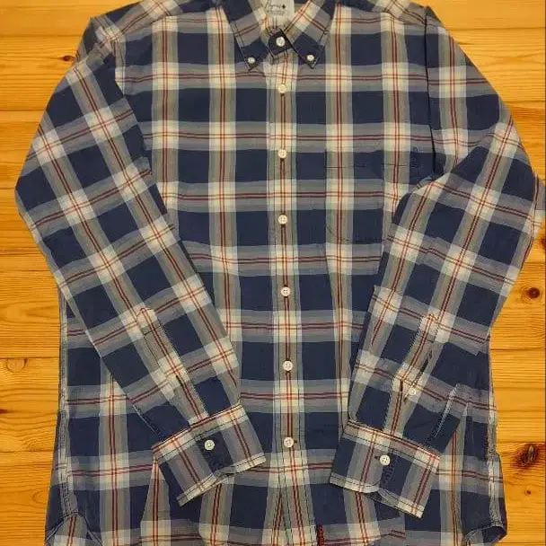 PAPAS 네이비 체크 버튼 다운 셔츠 L
