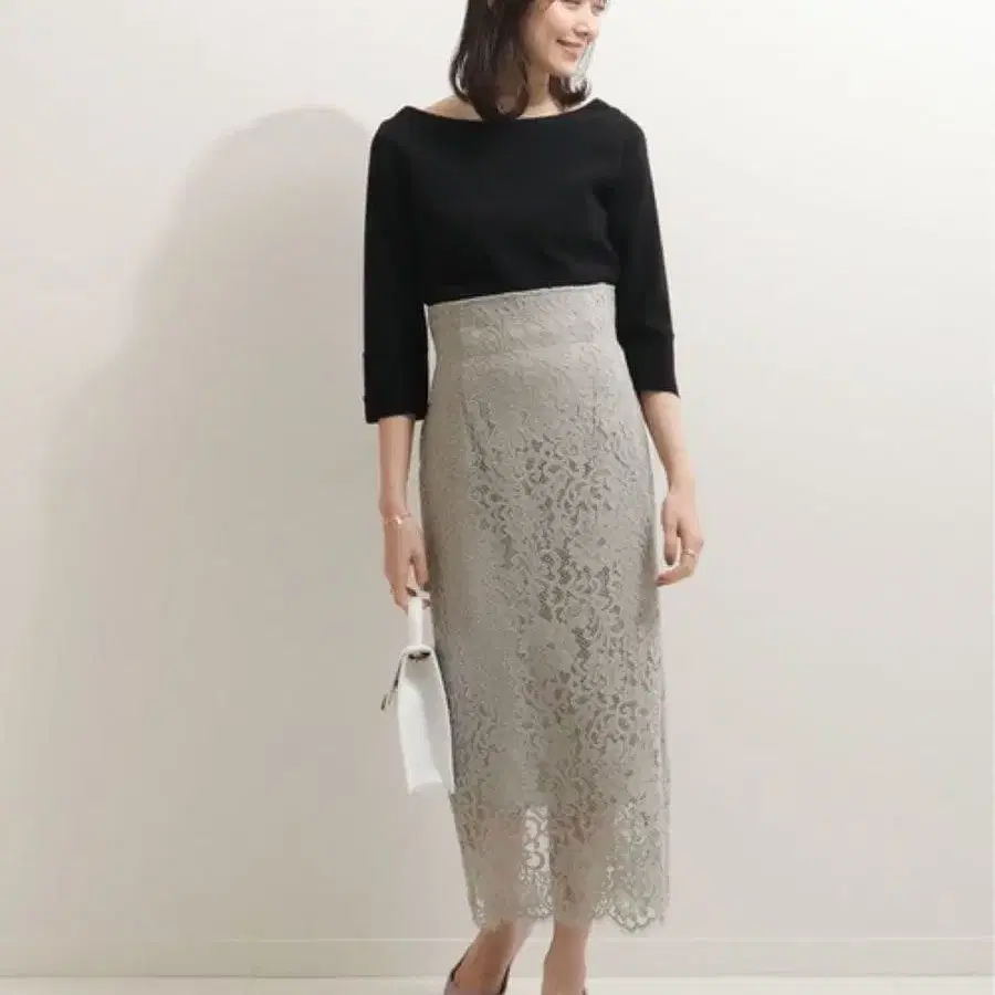 NOBLE 노블 레이스 I 라인 롱 타이트 스커트 일본제 36
