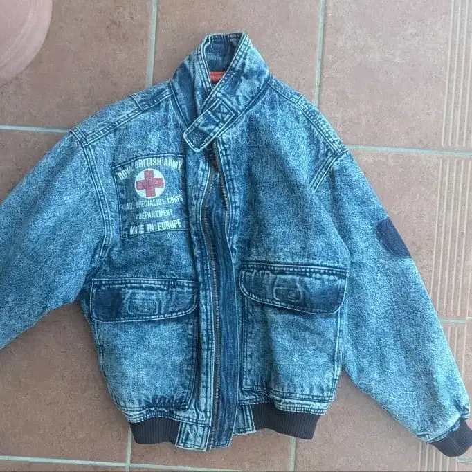 데님 스탠드 카라 자켓