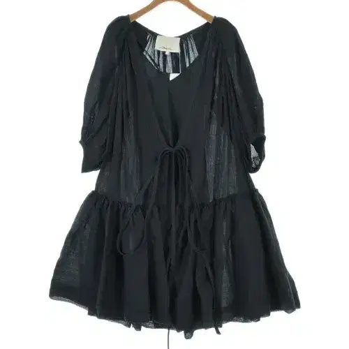 • [ 미사용 새상품 ] SKM 블랙 원피스 38 컷 디자인 플리츠 모드