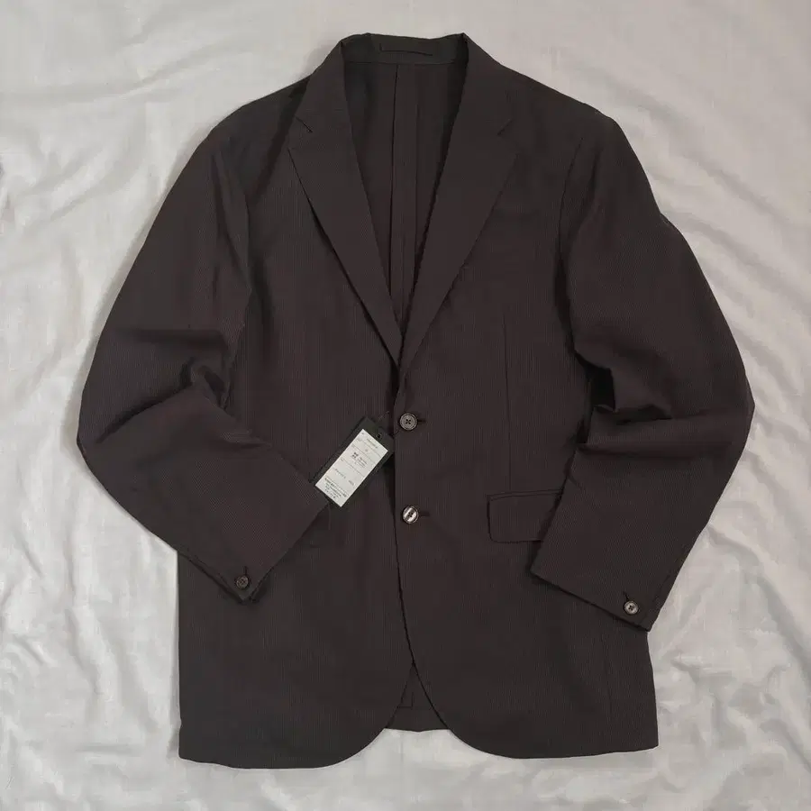 얇고 가벼운 착용감의 테일러드 자켓입니다. 택 포함으로, 미사용 또는 시착 정도의 상품입니다. 색상은 브라운 그레이 계열로, 빛의 정도에 따라 브라운으로도 그레이로도 보이는 차분한 색감입니다.