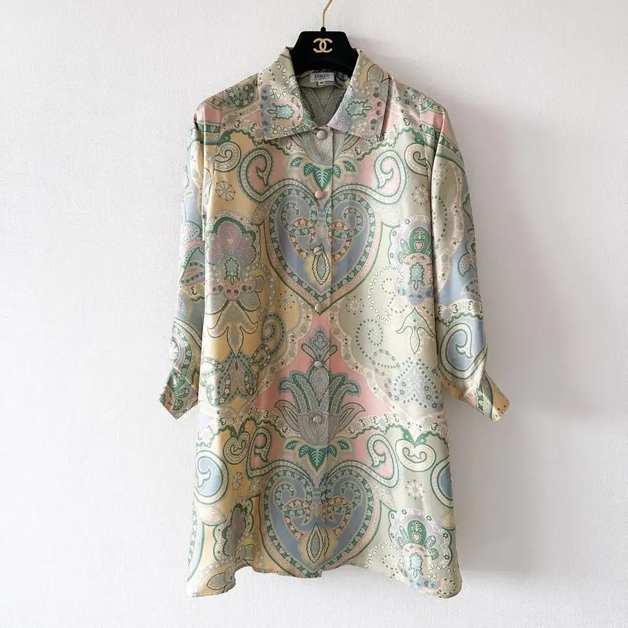 FOXEY 폭시 / 실크 100% 페이즐리 원피스 롱 셔츠