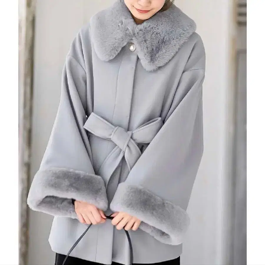 퍼로 화사함을 더한 페미닌 코트. 고급스러운 무드를 풍기는 여성스러운 코트입니다. 퍼 사용으로 고져스한 분위기를 연출합니다. 옷깃은 탈부착이 가능하여 코디에 변화를 줄 수도 있습니다. 소매의 퍼는 화려함뿐만 아니라 손을 따뜻하게 감싸줍니다. 옷깃의 큰 펄 버튼이 악센트가 됩니다. 리본 벨트가 포함되어 있어 앞을 잠가도 여성스러운 스타일링을 즐길 수 있습니다. 안감 있음, 신축성 없음, 중간 두께, 프론트 오픈, 단추식. 퍼 (옷깃) 탈부착 가능. 리본 벨트 포함 (벨트 루프 있음). 사이드 포켓 있음. 세탁: 드라이클리닝.