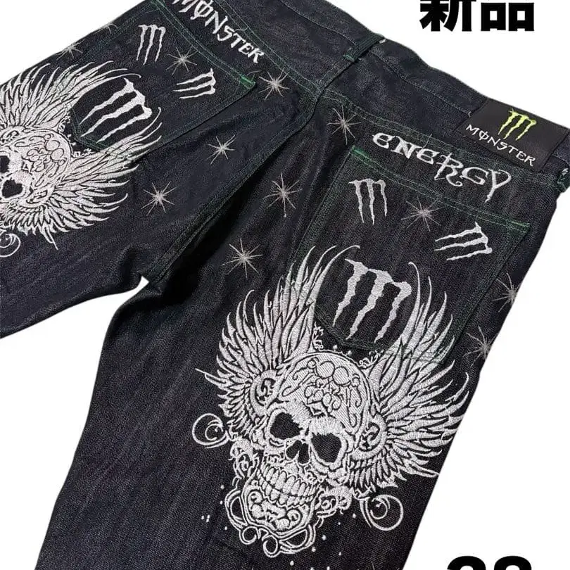 MONSTER ENERGY 스컬 자수 데님 리지드 마감 38 사이즈
