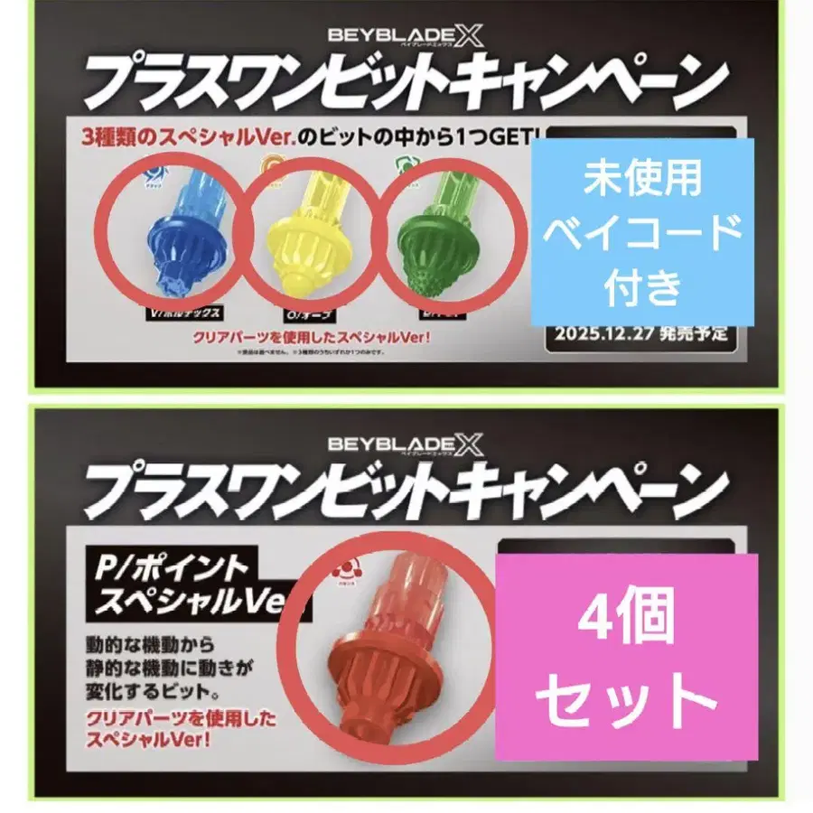 베이블레이드 X 플러스 원 비트 캠페인 4종 세트 P V O D 비트