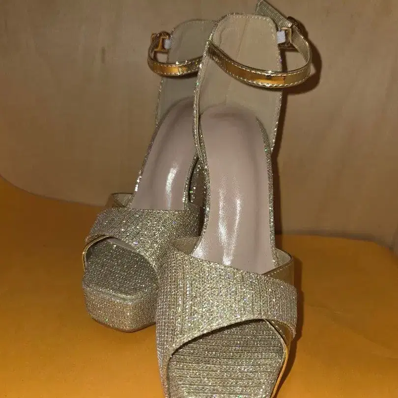 골드 글리터 스트랩 하이힐 (14cm 힐 35 사이즈)