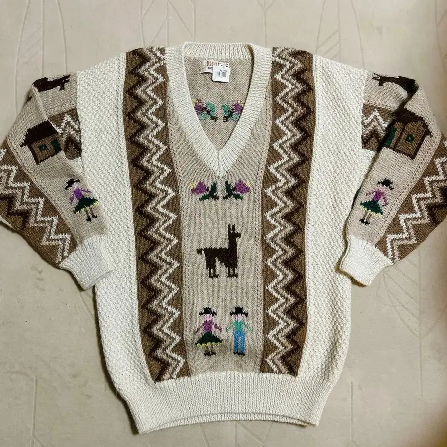 꽃, 알파카, 집, 인물의 귀여운 무늬 편직이 특징입니다.