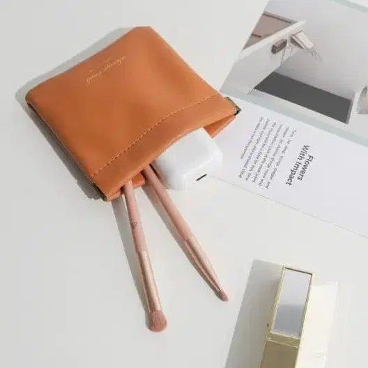 오렌지 합성 피혁 파우치 수납 포켓 포함