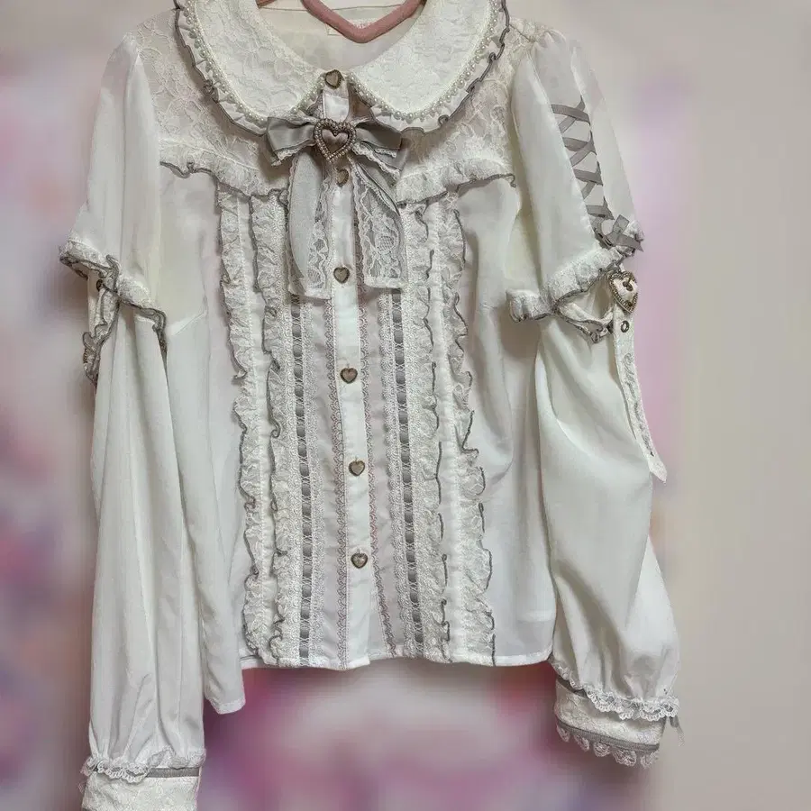 LIZLISA 컷 아웃 슬리브 블라우스 화이트 핑크