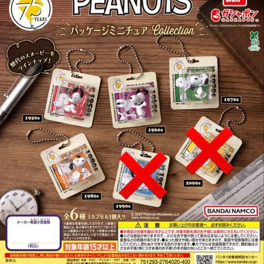 PEANUTS 패키지 미니어처 컬렉션 4개 세트입니다.
